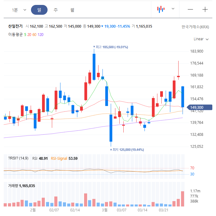 산일전기(062040) 주가 차트