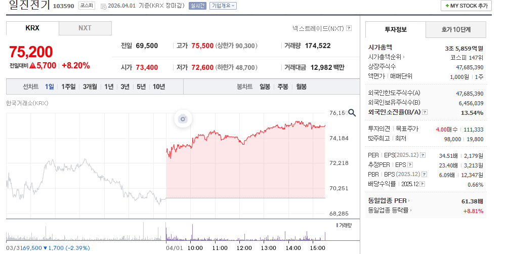 일진전기(103590)