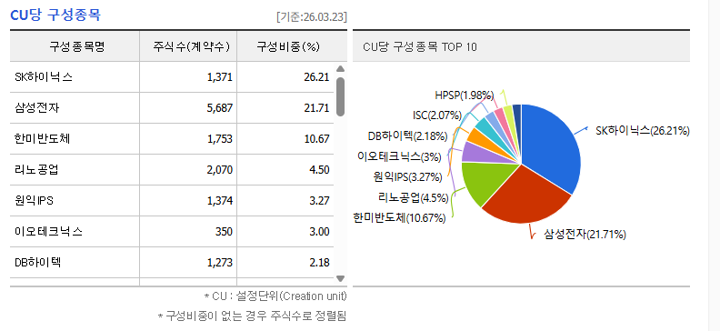 특정 몇 개 종목만 강하게 추종하는 “압축형”보다는 국내 반도체 업종 사이클을 비교적 넓게 담는 “정석형”에 가깝습니다.