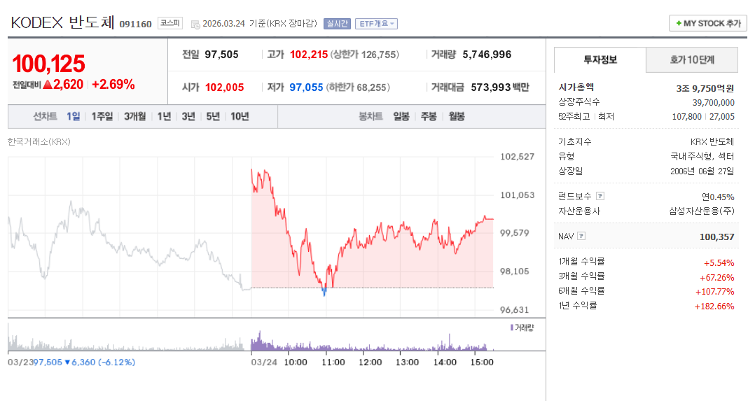 KODEX 반도체(091160)는 국내 반도체 업종을 대표하는 지수인 KRX 반도체 지수를 추종하는 ETF입니다.