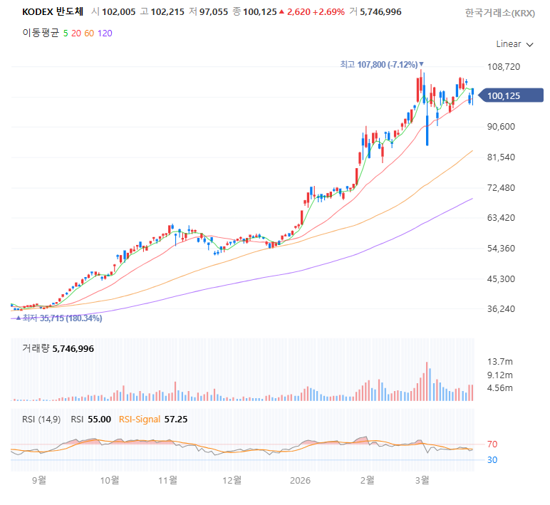이런 환경에서는 “반도체 전체가 같이 올라가는 구간”이 나타나기 쉬워 업종 ETF가 힘을 받기도 하지만, 반대로 기대가 과하게 선반영된 뒤에는 조정이 크게 나타날 수도 있어 현재 가격의 위치를 함께 보는 게 중요합니다.